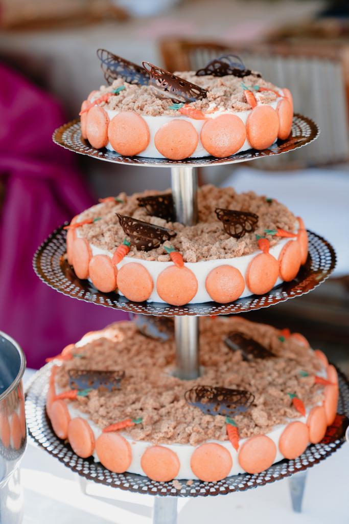 En 2026, el concepto de “tarta de boda” se redefine. Aparecen las mesas de donuts, de croissants, de quesos o de frutas, organizadas en varios niveles y con presentaciones artísticas.