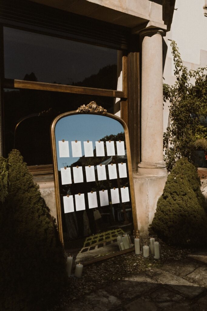 Las perlas se consolidan como uno de los elementos decorativos más influyentes. Se integran en copas, centros de mesa y estructuras florales suspendidas, aportando un brillo sutil y sofisticado. Los espejos, por su parte, amplifican la luz e introducen un efecto visual elegante en rincones de bienvenida o seating plans. Todo apunta a una decoración donde los detalles marcan la diferencia.